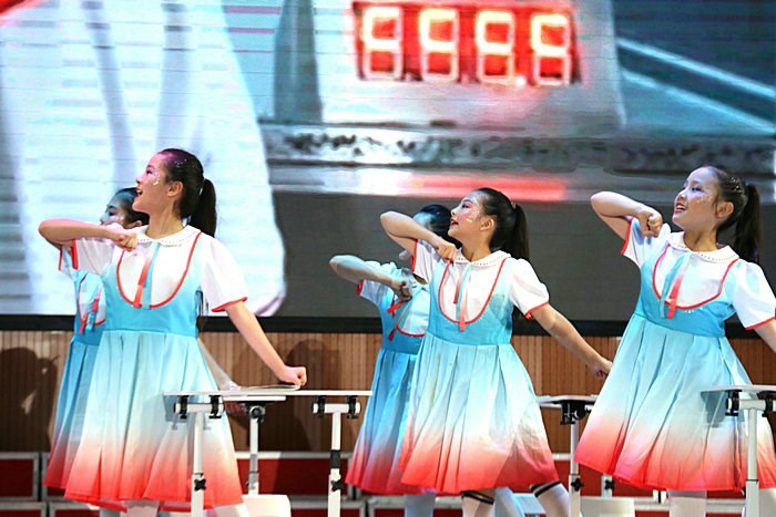 利辛中学呈现的手势课桌舞《青衿之志逐梦星河》和蒙城县三义路中学齐山路校区表演的健美操《阳光下的少年》,充分展示了学校在落实“双减”政策,加强“五项管理”,推进“五育并举”,切实为学生减负增趣、放松身心等方面取得的成效。