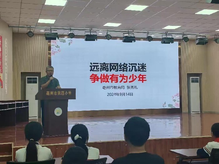 依托课堂教学,上好预防网络沉迷课。为谯城区五马中心小学提供快板作品《快板响起来 网安记心间》,指导该校排练,由4名学生在全校庆“六一”文艺汇演和“e起护航”现场进行表演,并在亳州智慧教育平台和市教育局微信公众号上展播,扩大防范网络沉迷宣教受众范围。市教育局宣教中心在亳州三十二中、安徽中药科技学校、亳州四小和涡阳县新兴学区大李中学举办预防中小学生网络沉迷课,倡导学生正确认识网络,加强自我监督,保持阳光心态,安全、文明用网,科学使用网络资源,促进身心健康成长。(供稿:訾微微 编审:张秀礼)