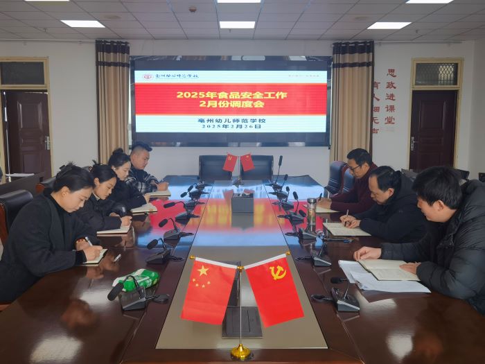 2月26日,亳州幼儿师范学校召开食品安全月调度会。学校党委书记、校长郭朝阳与校务委员、总务处主任郑重召集食堂管理负责人参会,旨在全方位加强校园食品安全管理,保障全校师生“舌尖上的安全”。