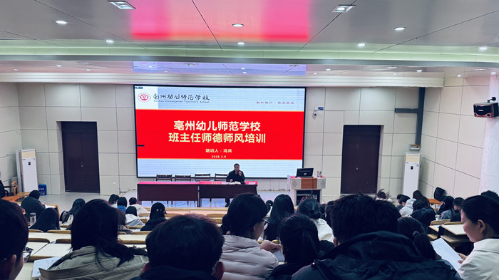 3月9日,为进一步加强师德师风建设,提升班主任队伍的专业素养和责任意识,亳州幼儿师范学校组织开展了班主任师德师风专题培训。学生处主任冯兵作为主讲人,全校班主任参加了此次培训。