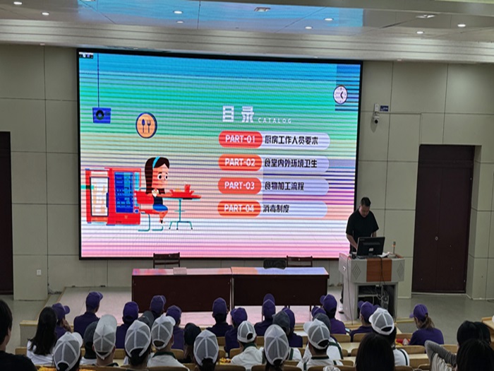 培训围绕四大核心内容展开:一是严格规范厨房工作人员言行要求,强化员工责任意识与职业素养;二是全面细化食堂内外环境卫生标准,履行常态化检查机制;三是强化食品加工全流程精细化管理,如粗加工间、切配间、操作间、备餐间、储存间等,确保各环节规范操作,坚持生进熟出原则;四是严格落实餐具消毒管理制度,完善消毒记录与监督监管。培训结束后,会议对优秀食堂窗口进行集中表彰,颁发流动红旗及奖励,通过树立先进典型,营造良性竞争氛围,持续推动校园食品安全管理水平整体提升。