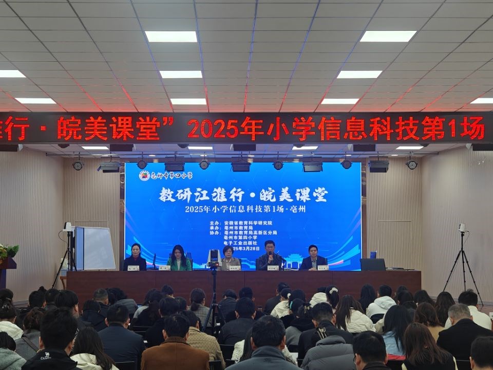 3月28日,全省2025年首场小学信息科技“教研江淮行·皖美课堂”教研活动在亳州市第四小学举行。市教育局副局长刘红岩出席活动。省教育科学研究院信息科技学科教研员方其桂、市教科所副所长兼信息科技学科教研员程齐苗以及来自全省16个地市的200余名教研员与教师代表参加此次活动。