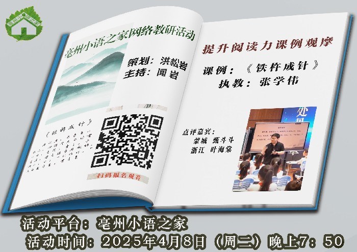 4月8日,“亳州小语之家”以网络教研形式举行了一场别开生面的文言文教学研讨活动,通过名师示范、跨域评课、深度对话,共同探索小学文言文教学的新路径。