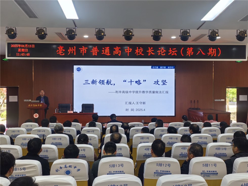 4月13日,我市第八期普通高中校长论坛在利辛高级中学举办。各县区教育局分管负责同志、教研部门负责人,全市普通高中学校校长、分管校长和教研主任参加论坛活动。市教育局副局长刘红岩主持活动。