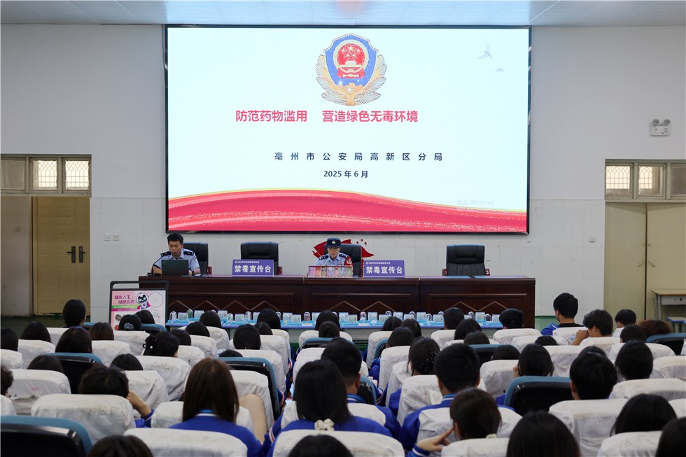 近日,安徽中药科技学校联合亳州市公安局高新区公安分局开展“防范药物滥用 营造绿色无毒环境”主题禁毒宣传教育活动。活动通过知识讲座、互动问答、实物展示等形式,为在校学生带来一堂生动的禁毒教育课,旨在增强青少年禁毒意识,营造绿色无毒校园环境。