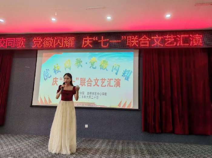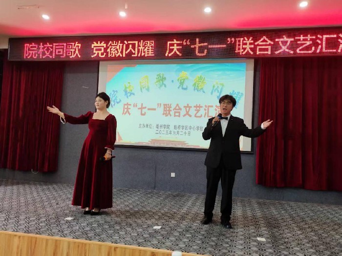 6月20日,谯城区赵桥学区中心学校携手亳州学院以“院校同歌,党徽闪耀”为主题,共同举办庆“七一”联合文艺汇演。院校师生代表齐聚一堂,用精彩纷呈的节目向党的生日献上诚挚祝福,迎接中国共产党成立104周年,传承红色基因,凝聚奋进力量。