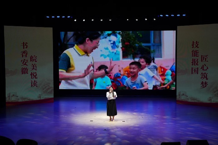 亳州新能源学校的朗诵作品《藏在童话世界里的匠心》是一曲献给幼教工作者的赞歌,详细描述了她们日常工作的缩影——像园丁般耐心浇灌幼苗,用温暖的怀抱化解孩子内心的不安;如守护者般专注细致,用爱心呵护着每一个稚嫩的心灵。“从第一次为哭泣的孩子擦去眼泪,我就懂得,保育不仅是责任,更是用爱点亮童年的艺术。”选手们的深情告白,道出了无数幼教工作者的初心:愿以全身心的守护,让每一颗童心都能在爱心与包容中自由成长。
