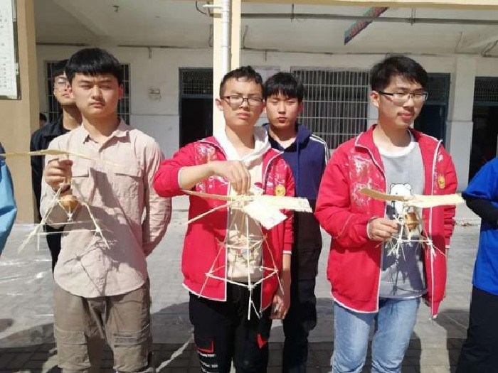 “我们用吸管搭建了蜂窝状缓冲框架,再裹上eva泡沫,利用物理中的缓冲原理分散落地冲击力!”该校高一(5)班的小王兴奋地介绍道,“这个六边形蜂窝结构就像蜂巢一样,每个面都能均匀受力,从结构强度和稳定性上比普通框架强很多。”一旁的队友补充说:“设计时我们用计算了框架的角度和边长,保证装置在受力时不会发生变形,确保鸡蛋安全落地。”高二(3)班的学生则另辟蹊径,模仿埃菲尔铁塔的镂空桁架结构,用硬卡纸制作出立体支架,既减轻了装置重量,还利用三角形的稳定性原理增强了整体结构强度,让冲击力能沿着特定方向传导分散。赛后,学生们围绕结构设计的创意进行分享,充分展现了学科知识融合运用的智慧。这场充满趣味与挑战的比赛,正是亳州二中“技术赋能、学科融合”生态育人理念的生动缩影。