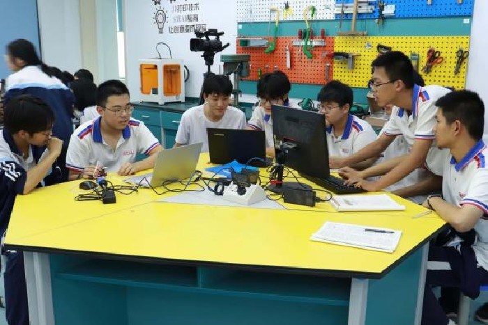 亳州二中着力打造“技术 学科”复合型教师团队,成立综合教研组,推动教师向“跨学科设计者”转型。学校建成了科技互动体验室、航模实验室、机器人实验室、创客工坊学科特色教室,作为省stem跨学科教学实践基地,这些优质资源为科创课程开展、学生实验探究和创新实践提供了有力保障,助力学生探索科技前沿领域。
